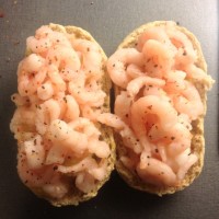 Ingrédients : 2 demi tranches de pain des crevettes mayonnaise (faite maison) Préparation : Étalez la mayonnaise sur la tranche de pain; faites un dôme de crevettes sur la tartine & poivrez. Bonne dégustation !